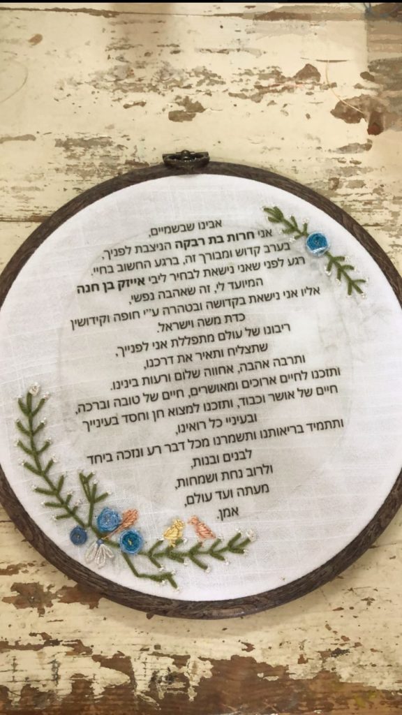 ברכות כלה אישיות רקומות על בד איכותי, בעיצוב עדין ומרגש, עם מסגרת ייחודית – מתנה אישית, רוחנית ומשמעותית לכל כלה.